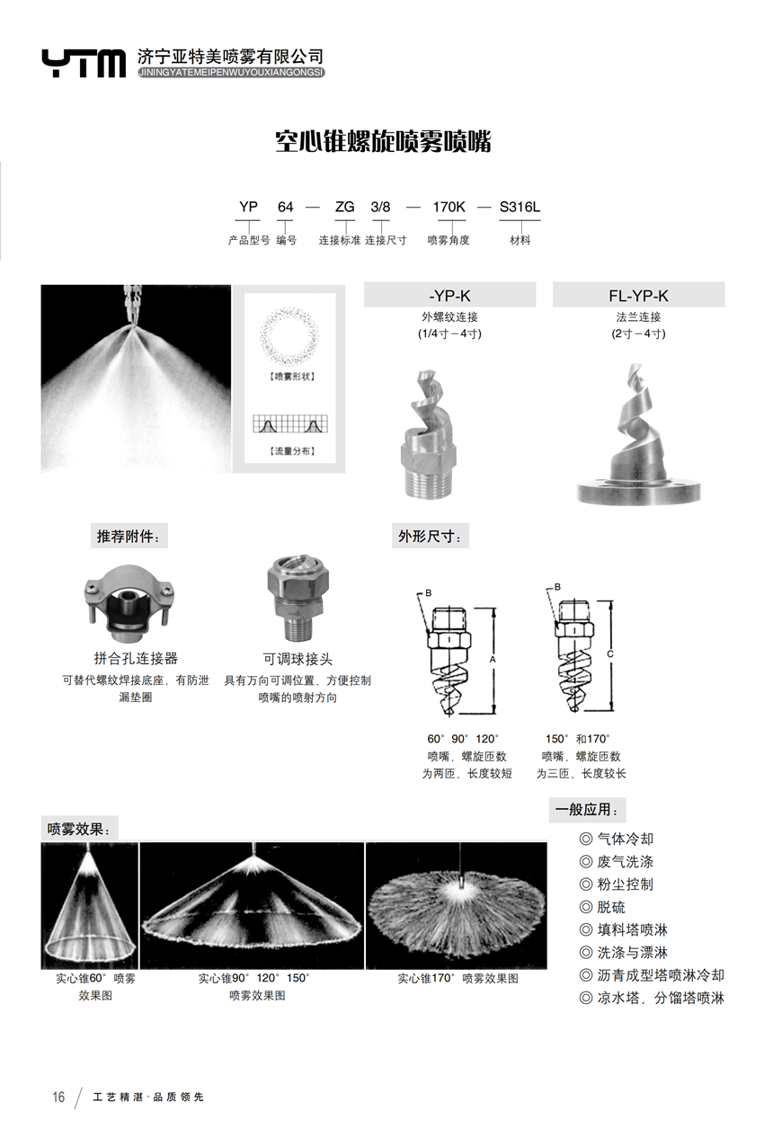 國(guo)內(nei)專(zhuan)業(ye)化(hua)生產和銷(xiao)售噴嘴,噴槍(qiang)和噴霧(wu)系統的技術企業(ye)空(kong)心(xin)錐(zhui)形(xing)(xing)噴(pen)嘴(zui)(zui)(zui)是什么?空(kong)心(xin)錐(zhui)形(xing)(xing)噴(pen)嘴(zui)(zui)(zui)采用空(kong)心(xin)設計,噴(pen)射出來(lai)的噴(pen)霧(wu)是空(kong)心(xin)圓(yuan)環形(xing)(xing)狀(zhuang)。螺旋噴(pen)嘴(zui)(zui)(zui)又(you)叫(jiao)脫硫(liu)噴(pen)嘴(zui)(zui)(zui)、防(fang)堵塞噴(pen)嘴(zui)(zui)(zui)、大(da)流量噴(pen)嘴(zui)(zui)(zui)、除塵噴(pen)嘴(zui)(zui)(zui)、耐腐(fu)蝕噴(pen)嘴(zui)(zui)(zui),是一種實心(xin)錐(zhui)形(xing)(xing)或(huo)空(kong)心(xin)錐(zhui)形(xing)(xing)噴(pen)霧(wu)噴(pen)嘴(zui)(zui)(zui)。