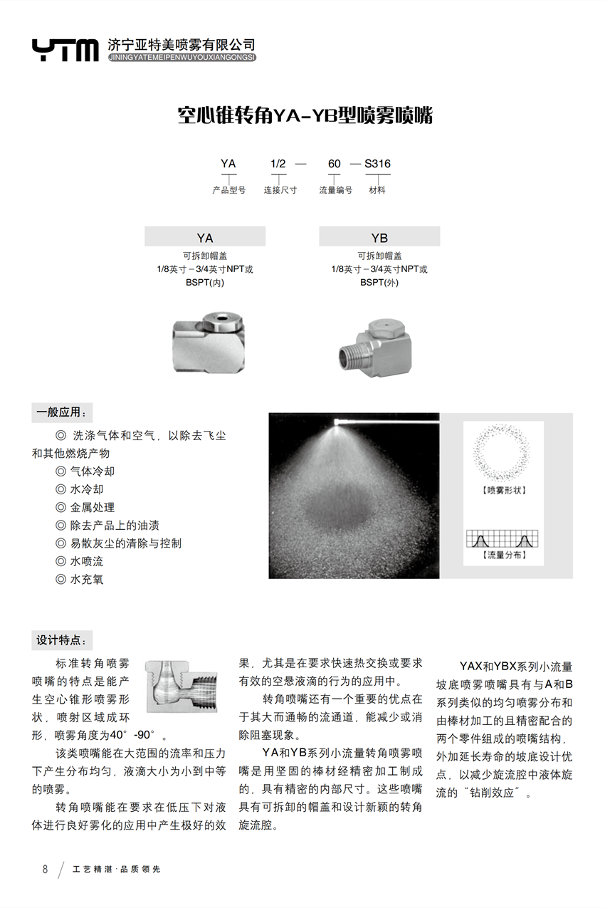 空心錐(zhui)形噴(pen)(pen)(pen)嘴應用工(gong)作原理:噴(pen)(pen)(pen)流(liu)方式為空心錐(zhui)形,噴(pen)(pen)(pen)涂區域(yu)成環形,有兩種噴(pen)(pen)(pen)霧角系列,標準角度為70°-90°。空心錐(zhui)形噴(pen)(pen)(pen)嘴整體為氮化(hua)硅結合(he)碳化(hua)硅材料制成。適(shi)用于惡劣的(de)工(gong)作環境,該(gai)類噴(pen)(pen)(pen)嘴能在大范(fan)圍的(de)流(liu)率和壓(ya)力下產生分布(bu)均(jun)勻(yun)、液滴大小(xiao)為中等到的(de)噴(pen)(pen)(pen)霧。