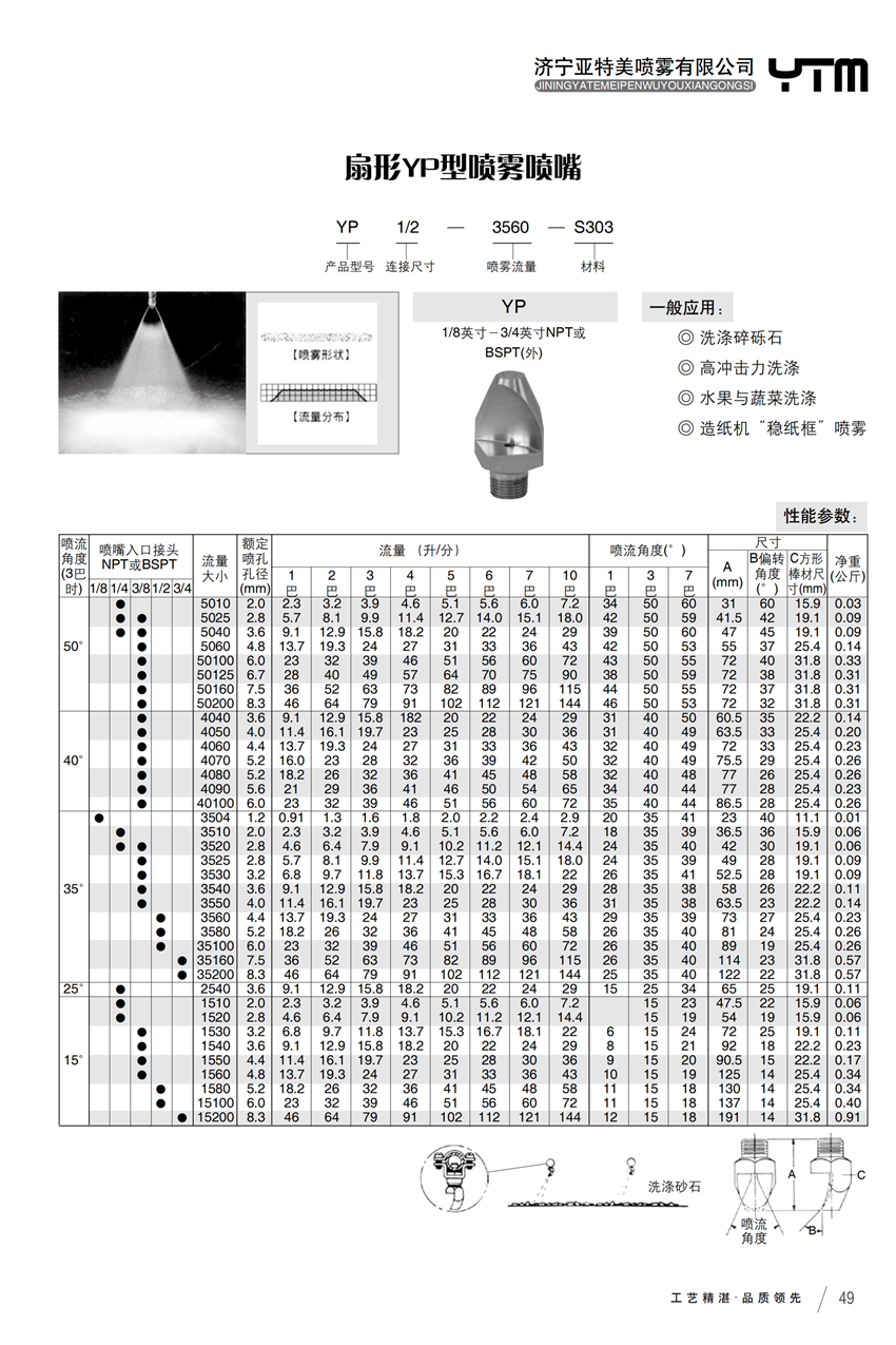 產品型號YP 連接尺寸 1/2 噴霧3560 材料S303
