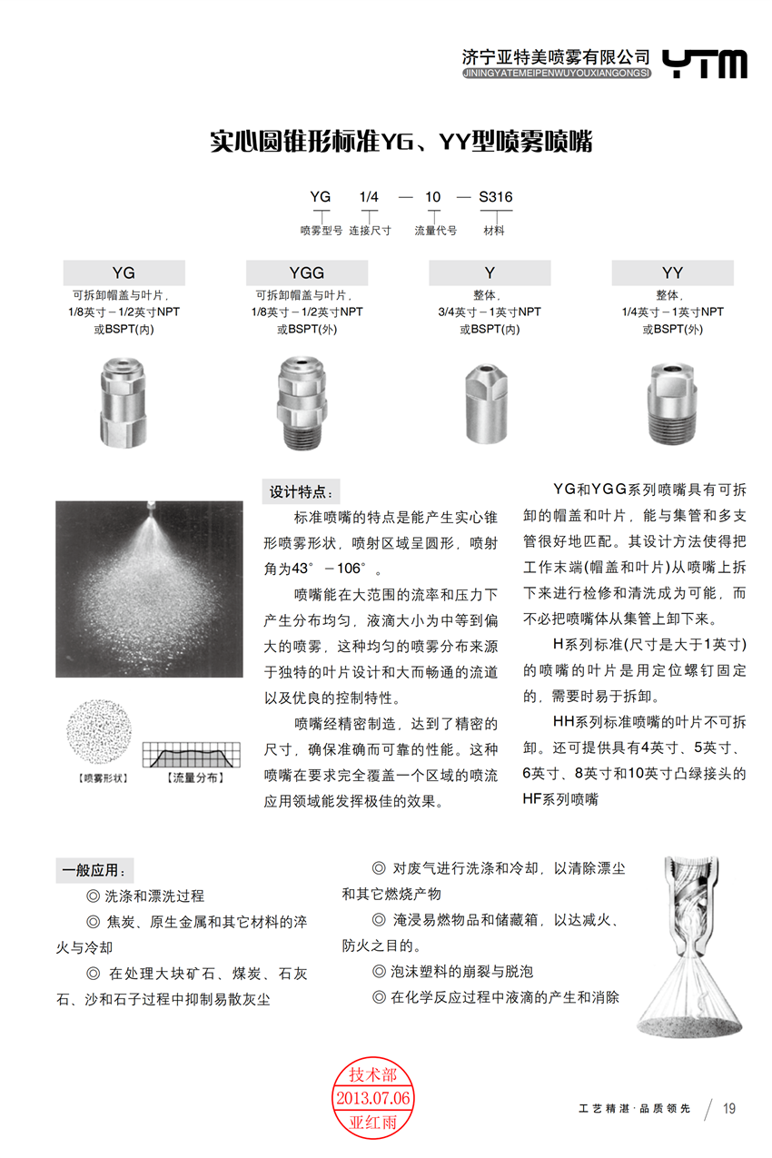 實心圓錐形標準YG、YH型噴霧噴嘴