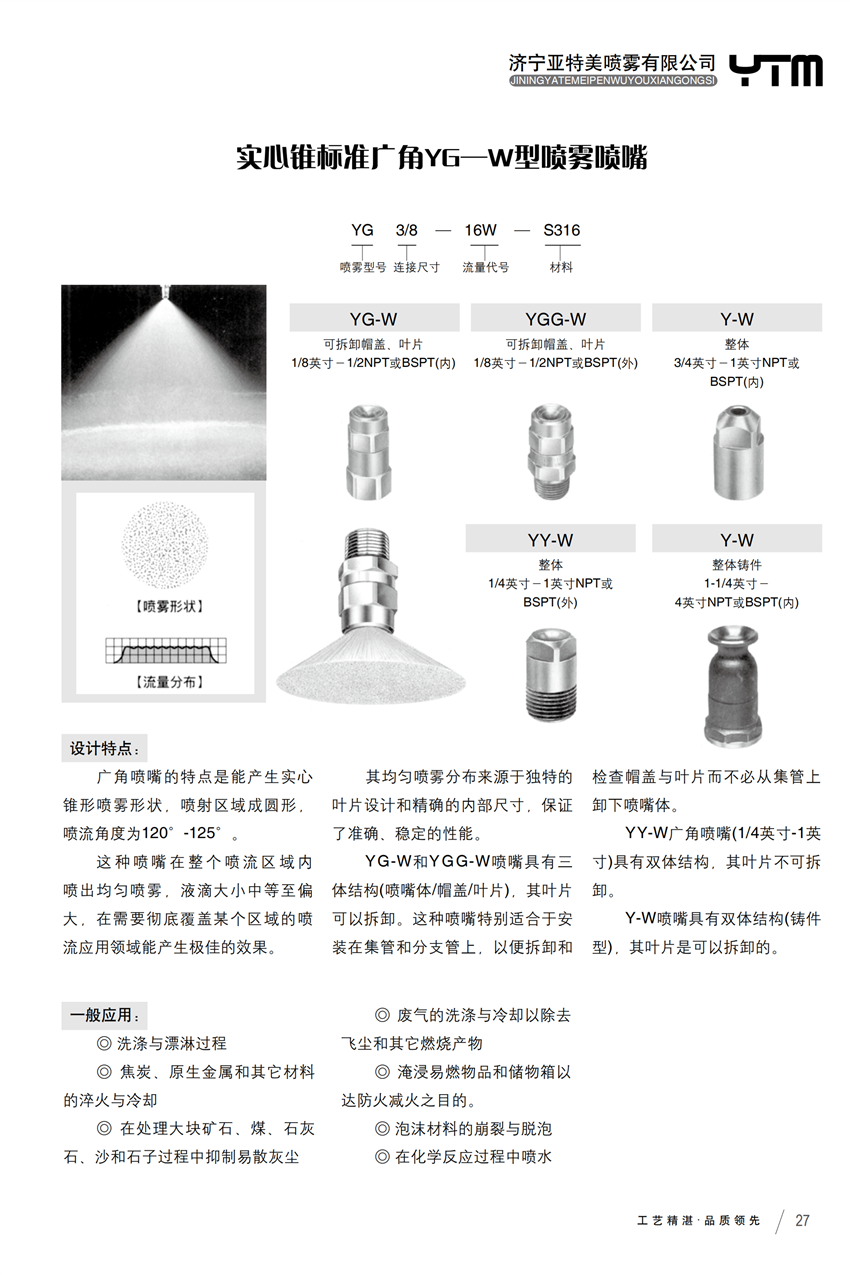 國內專業化生產和銷售噴嘴,噴槍和噴霧系統的技術企業實心錐標準廣角YG-W型噴霧噴嘴
