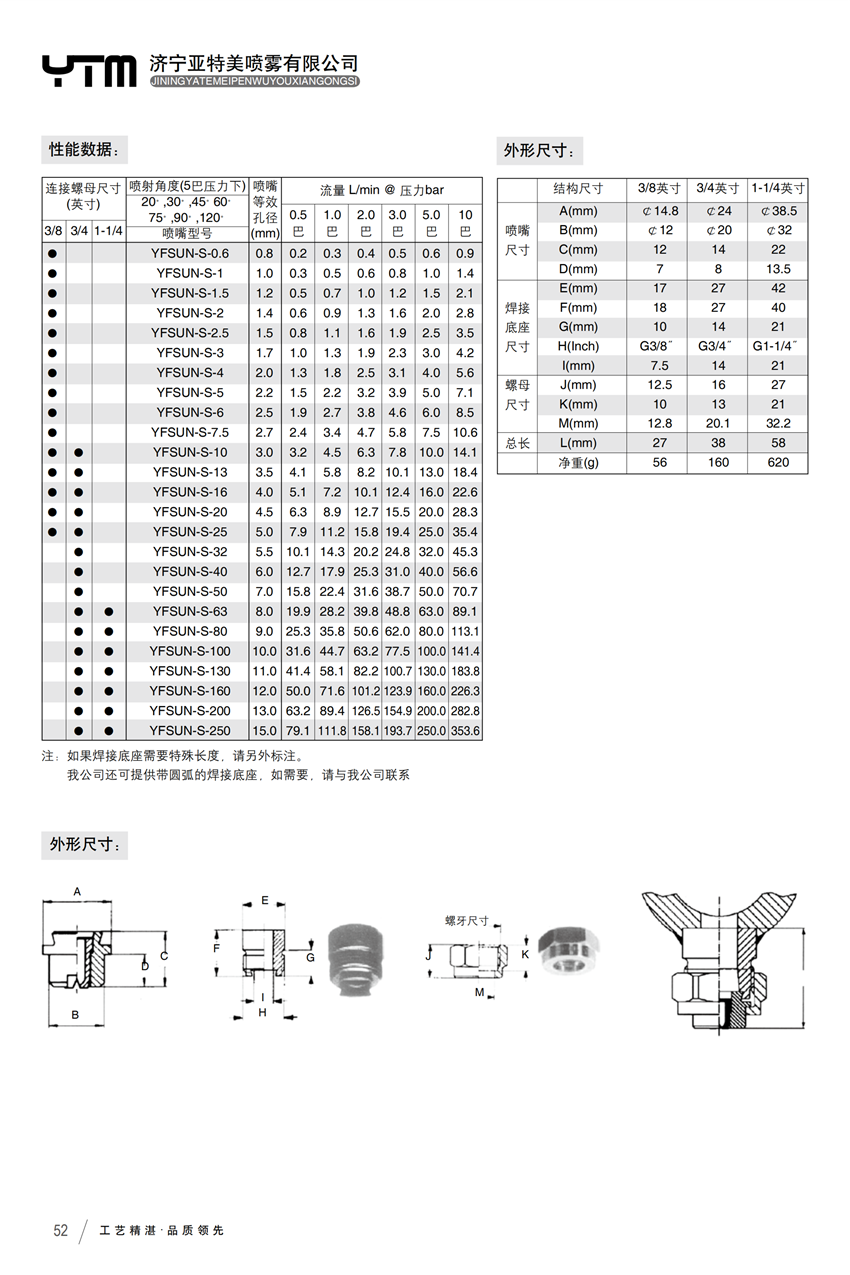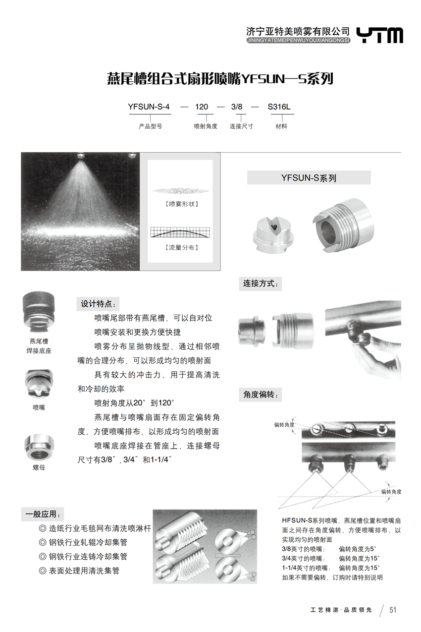 國內專業化生產和銷售噴嘴,噴槍和噴霧系統的技術企業燕尾槽組合式扇形噴嘴YFSUN-S系列